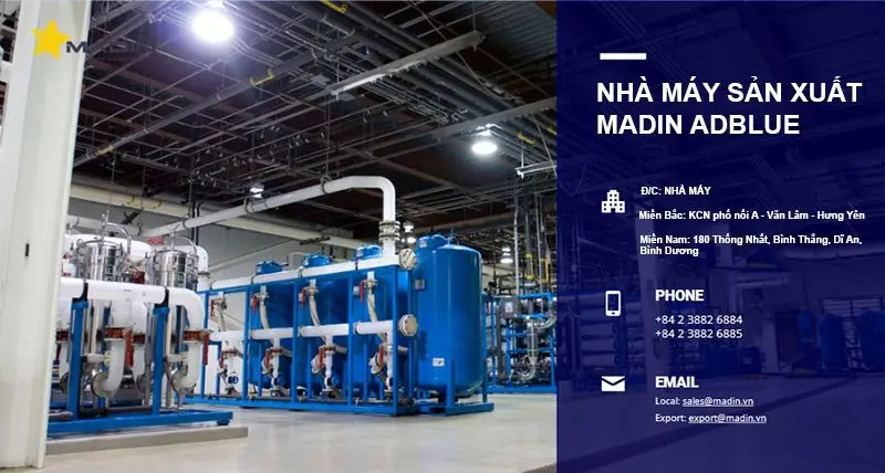 Lựa chọn đúng địa chỉ cung cấp dung dịch xử lý khí công nghiệp uy tín sẽ giúp doanh nghiệp đảm bảo hiệu quả xử lý khí thải, duy trì hoạt động ổn định và đáp ứng các tiêu chuẩn môi trường hiện hành. Trong đó, MADIN CHEM là một trong những nhà máy sản xuất dung dịch Adblue quy mô lớn tại Việt Nam với hệ thống sản xuất hiện đại và quy trình kiểm soát chất lượng nghiêm ngặt. Sản phẩm Madin Adblue đạt nhiều tiêu chuẩn quốc tế, được tin dùng bởi nhiều nhà máy lắp ráp ô tô và doanh nghiệp vận tải. Đây là nguồn cung đáng tin cậy cho các đơn vị cần giải pháp xử lý khí thải hiệu quả.